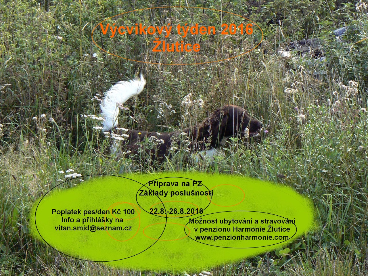Výcvik bude zaměřen na přípravu ohařů k podzimním zkouškám. Aporty pernatá a srstnatá, dohledávky, vlečky, přinášení kachny z kluboké vody.